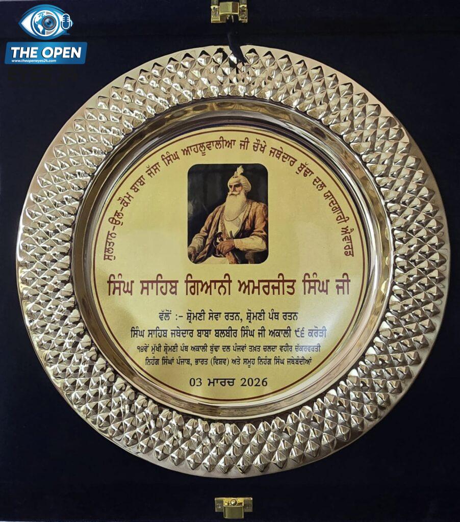 ਯਾਦਗਾਰੀ ਐਵਾਰਡ ਨਾਲ ਵਿਸ਼ੇਸ਼ ਤੌਰ ’ਤੇ ਨਿਵਾਜਿਆ ਗਿਆ। ਸਿੰਘ ਸਾਹਿਬ ਗਿਆਨੀ ਅਮਰਜੀਤ ਸਿੰਘ ਦੀ ਨਿਮਰਤਾ, ਗੁਰਮਤਿ ਗਿਆਨ ਅਤੇ ਸੇਵਾ ਭਾਵਨਾ ਨੇ ਸਿੱਖ ਕੌਮ ਵਿੱਚ ਉਨ੍ਹਾਂ ਨੂੰ ਵਿਲੱਖਣ ਪਛਾਣ ਬਖ਼ਸ਼ੀ ਹੈ। ਉਨ੍ਹਾਂ ਦੀ ਅਟੱਲ ਸੇਵਾ ਅਤੇ ਆਤਮਿਕ ਨੇਤ੍ਰਿਤਵ ਸਿੱਖ ਸੰਸਾਰ ਲਈ ਪ੍ਰੇਰਣਾ ਦਾ ਸਰੋਤ ਹੈ।