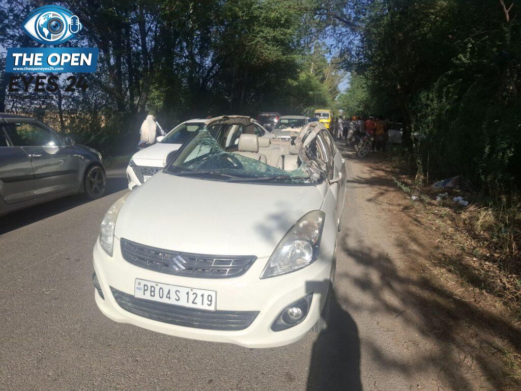 ਵਿੱਚ ਵੱਜਿਆ ਕਿ ਕਾਰ ਦੀ ਛੱਤ ਕਿਸੇ ਕਾਗਜ਼ ਵਾਂਗ ਪਾੜ ਕੇ ਵੱਖ ਹੋ ਗਈ। ਹਾਦਸੇ ਤੋਂ ਤੁਰੰਤ ਬਾਅਦ ਉੱਥੋਂ ਗੁਜ਼ਰ ਰਹੇ ਰਾਹਗੀਰਾਂ ਨੇ ਵੱਡੀ ਮਿਸਾਲ ਪੇਸ਼ ਕਰਦਿਆਂ ਤੁਰੰਤ ਆਪਣੀਆਂ ਗੱਡੀਆਂ ਰੋਕੀਆਂ ਅਤੇ ਬਚਾਅ ਕਾਰਜ ਸ਼ੁਰੂ ਕੀਤੇ। ਰਾਹਗੀਰਾਂ ਨੇ ਬੜੀ ਮੁਸ਼ੱਕਤ ਨਾਲ ਕਾਰ ਚੋਂ ਚਾਲਕ ਅਤੇ ਹੋਰ ਸਵਾਰਾਂ ਨੂੰ ਬਾਹਰ ਕੱਢਿਆ ਅਤੇ ਉਨ੍ਹਾਂ ਨੂੰ ਸੰਭਾਲਿਆ। ਕੁਦਰਤ ਦਾ ਅਜਿਹਾ ਕਰਿਸ਼ਮਾ ਦੇਖਣ ਨੂੰ ਮਿਲਿਆ ਕਿ ਗੱਡੀ ਦੀ ਇੰਨੀ